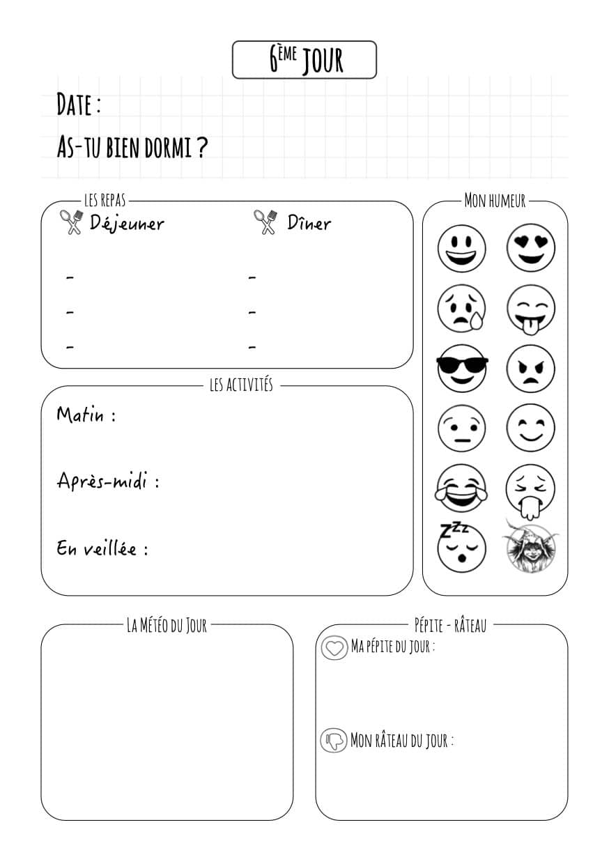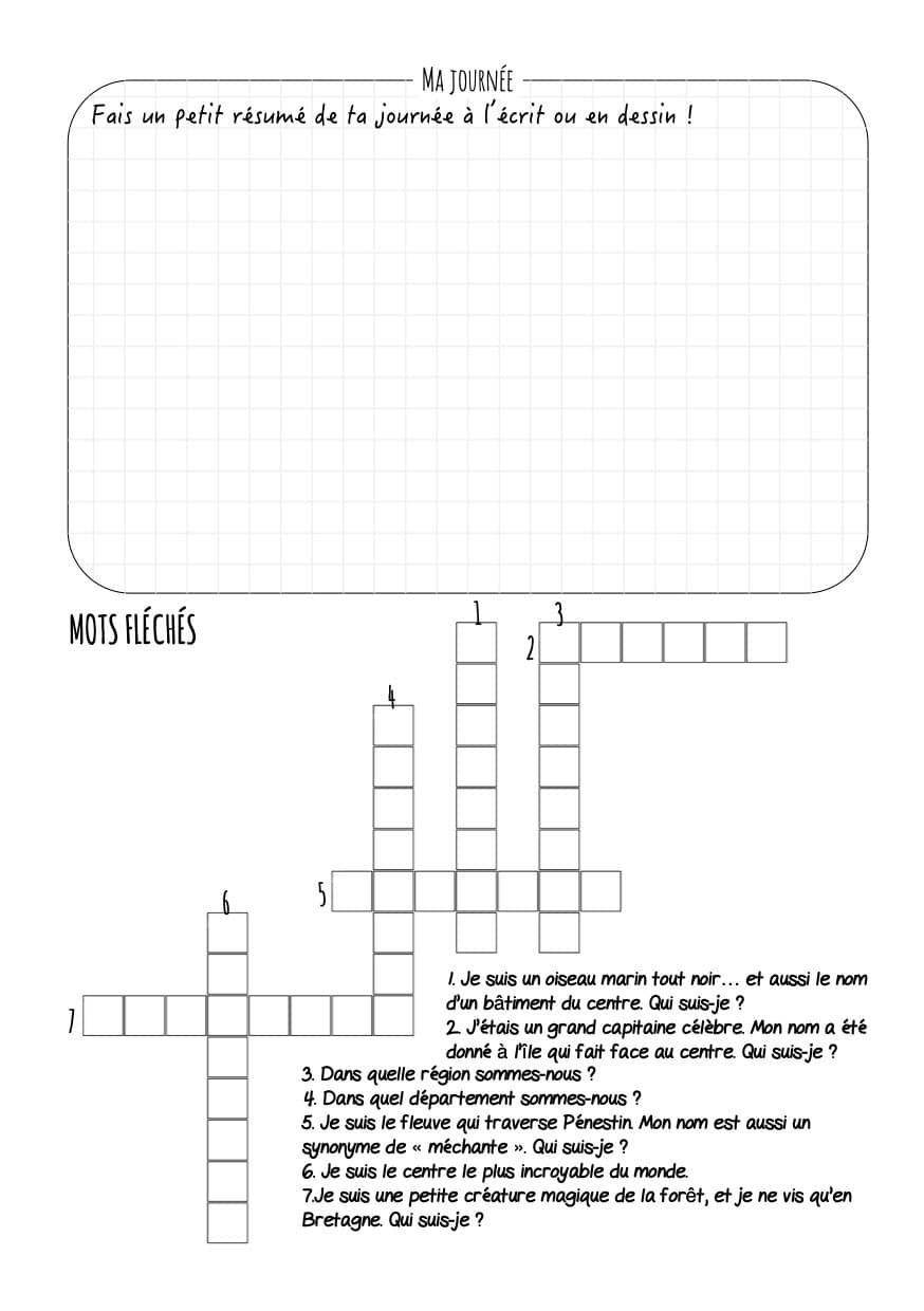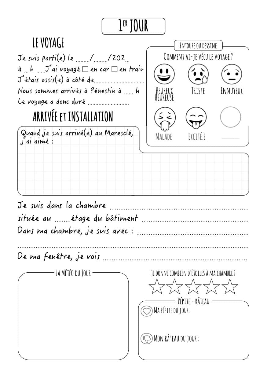 Carnet de séjour Pour imprimer sous forme de livret : VERSION IMPRIMABLE puis imprimer en A4 paysage – RECTO/VERSO – bord court. Page par page : Les jours : Jour 1 Jour 2 Jour 3 Jour 4 Jour 5 Jour 6 Jour 7 Jour 8 Les jeux : 1ere Veillée Points à relier Mots fléchés Mots Emmelés Mandala Labyrinthe 7 différences Sudoku Autres : Couverture Recto Couverture Verso Graf Présentation perso Présentation Maresclé Géographie Parole chanson Petits Mots